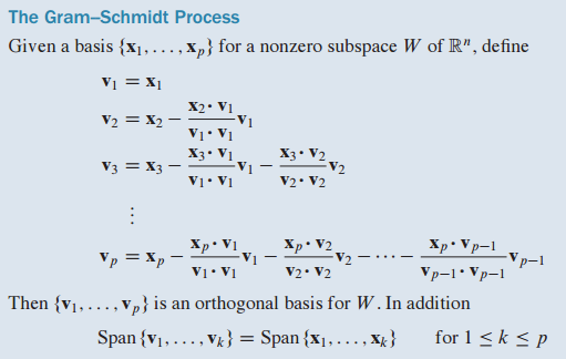 그람슈미트 과정은 임의의 부분공간(subspace)이 있을 때 그 subspace를 이루는 직교 기저(orthogonal basis)를 찾는 것입니다.