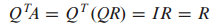 여기서 Q는 column이 Col A에 대한 orthonormal basis로 이루어진 mxn 크기의 행렬이고