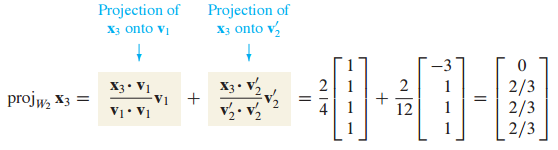 $x_3$을 2차원 W에 projection 한 것은 W를 span하는 각각의 orthogonal basis에 projection 한 뒤 그것들을 더해주면 됩니다.