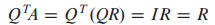 Q는 orthonormal basis의 column을 지니고 있으므로 $Q^TQ$는 Q의 길이를 의미합니다.