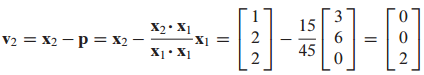 (2) $v_2$는 $x_2$에 $x_2$를 $x_1$에 projection 한 것을 빼서 구할 수 있습니다.