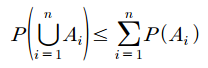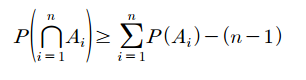 부울의 부등식을 이용하면 합사건에 대한 확률의 경계값을 유도할 수 있습니다. $A_i$를 $A_i^c$로 대체하면 본페르니 부등식을 유도할 수 있습니다.