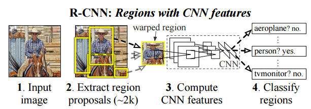 R-CNN이 위 알고리즘을 수행하기 위해 어떻게 구성되어 있는지 알아보도록 하겠습니다.