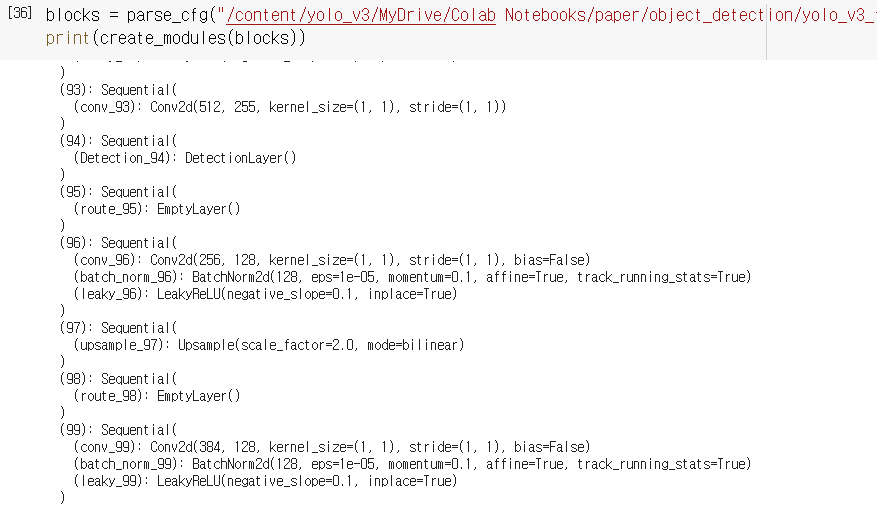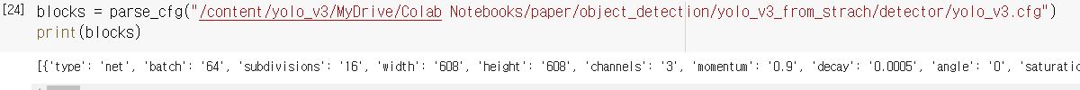이제 config 파일에 있는 blocks에 대한 PyTorch 모듈을 구축하기 위해 parse_cfg 함수로 반환된 리스트를 사용할 것입니다.
