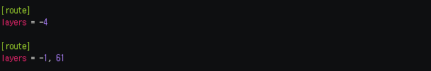 layers가 두개의 값을 가질 때, 이것은 값으로 index된 연결된 layers의 feature maps를 반환합니다. 우리의 예제에서 이것은 -1, 61이고 layer은 이전 레이어와 61번째 layer에서 깊이 차원에 따라 연결된 feature map을 출력할 것입니다.