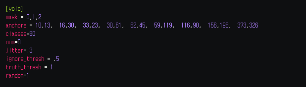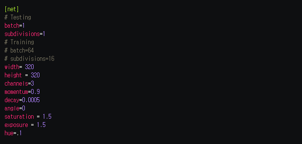 공식적인 코드는 신경망을 구축하기 위해 구성 파일을 사용합니다. cfg 파일은 신경망의 layout을 설명합니다.