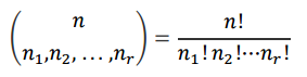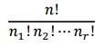이처럼 $n_1$ + $n_2$ + ... + $n_r$ = n이 되고 n을 r개의 그룹으로 나눌 때 다음과 같은 식으로 구할 수 있습니다.