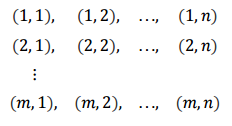모든 가능한 결과의 집합은 m개의 행과 n개의 열로 이루어져 있습니다. 따라서 총 mn개의 결과가 도출됩니다.