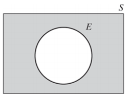 사건 E의 여집합은 표본 공간 S에서 사건 E를 뺀 것을 의미합니다. 그리고 $E^c$로 표시합니다.