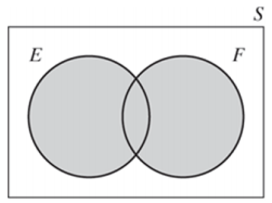 표본 공간 S에 있는 사건 E와 F의 합집합은 E와 F가 둘 다 발생한 것을 의미하고 E$\cup$F로 표시합니다.