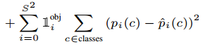 p(c) 클래스 확률에 대한 error입니다. 객체를 포함한 바운딩박스에 대해서만 계산합니다. classification error에 대한 부분으로 생각할 수 있습니다.
