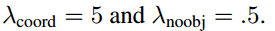 $\lambda_{coord}$는 localization error의 페널티를 키우기 위한 파라미터로 5로 설정되어있습니다.