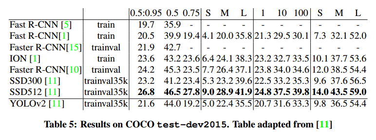 아래 표는 다른 기법들과 YOLO v2를 비교한 표입니다.