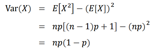 따라서 기대값은 np, 분산은 np(1-p)로 이해할 수 있습니다.