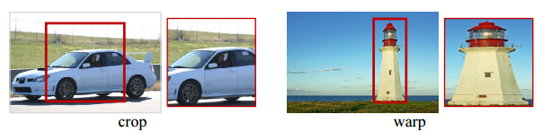 참고로, crop과 warp은 classification에서는 data augmentation, detection에서는 region proposal을 입력 사이즈에 맞춰주기 위해 이용합니다.