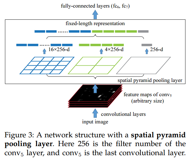 위 그림에서는 256개의 feature map, 21개 bin이므로 SPP layer는 256 * 21 차원 벡터를 출력합니다.