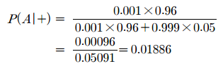 암 간이진단 검사를 실시하는데 이 검사는 암에 걸렸을 때 양성반응이 나올 확률은 0.96이고 암에 걸리지 않았을 때 양성반응이 나올 확률이 0.05라고 하겠습니다. 그리고 암에 걸릴 확률을 0.001이라고 하겠습니다. 만약 검사에서 양성반응이 나왔다면, 암에 걸렸을 확률을 구해보도록 하겠습니다.