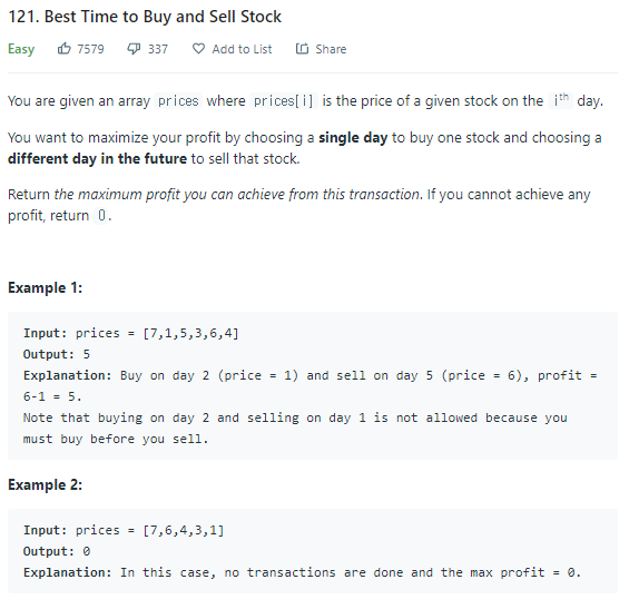 leetcode.com/problems/best-time-to-buy-and-sell-stock/
