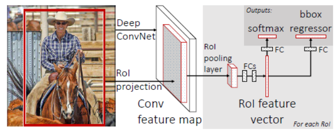 한개는 object class을 예측하는 FC layer, 다른 하나는 bounding box regressor을 수행하는 FC layer입니다.