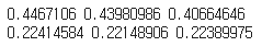 print(stdR, stdG, stdB)