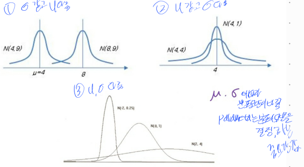 모수(parameter)는 $\mu$(평균), $\sigma^2$(분산) 입니다.