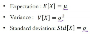 확률 변수 X가 정규 확률 변수거나 정규 분포를 따를 때, 확률 밀도 함수(pdf)는 다음과 같습니다.