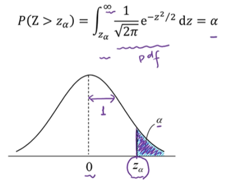 표준 정규 분포가 $Z_a$보다 클 확률은 a입니다. 이 a는 표준 정규 분포표 or Z 테이블에 정리되어 있습니다.