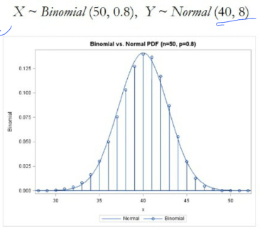 이항 분포를 정규 분포로 근사화했을 때, 모수는 평균 = np, 분산 = np(1-p) 입니다.