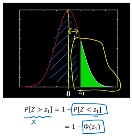 표준 정규 분포가 $z_1$보다 클 확률은 위와 같은 방법을 이용합니다.