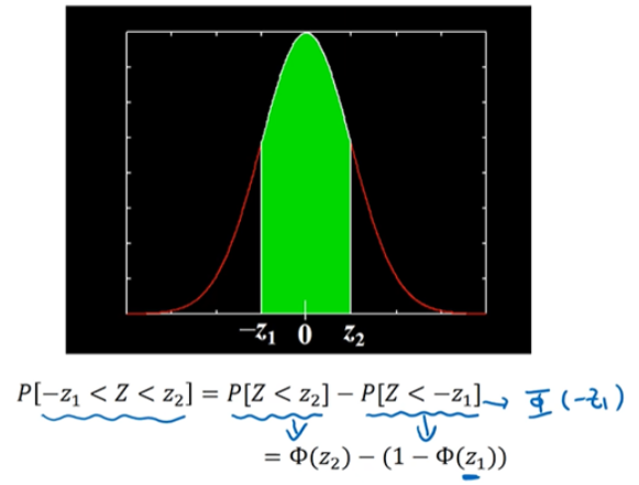 사이 확률은 $z_2$에서 -$z_1$을 빼주면 됩니다.