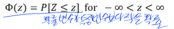 Z의 cdf는 표로 정리되어 있습니다. 그리고 표준 정규 분포의 cdf를 $\phi$로 표기합니다.