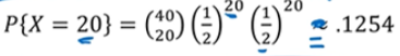 동전을 40번 던졌을 때, 앞면이 20개 나올 확률을 구하는 문제입니다. 이항 분포를 정규분포로 근사화해서 풀어보고, 단순히 이항분포로도 풀어보겠습니다.