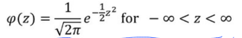 $\mu$ = 0, $\sigma$ =1 일때, 정규 분포는 다음과 같습니다.