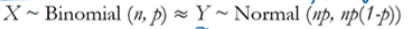 이항 분포를 정규 분포로 근사화했을 때, 모수는 평균 = np, 분산 = np(1-p) 입니다.