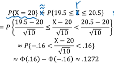이산형을 연속형으로 일치시키긴 쉽지 않습니다. 이를 잘 근사화하기 위해 -0.5, +0.5를 해주면 근사가 잘 됩니다. 0.5는 경험적으로 나온 수치입니다. 그리고 이를 연속성 수정이라고 합니다.