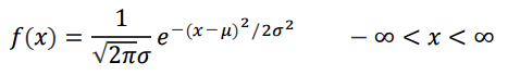확률 변수 X가 정규 확률 변수거나 정규 분포를 따를 때, 확률 밀도 함수(pdf)는 다음과 같습니다.