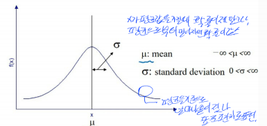 모수(parameter)는 $\mu$(평균), $\sigma^2$(분산) 입니다.