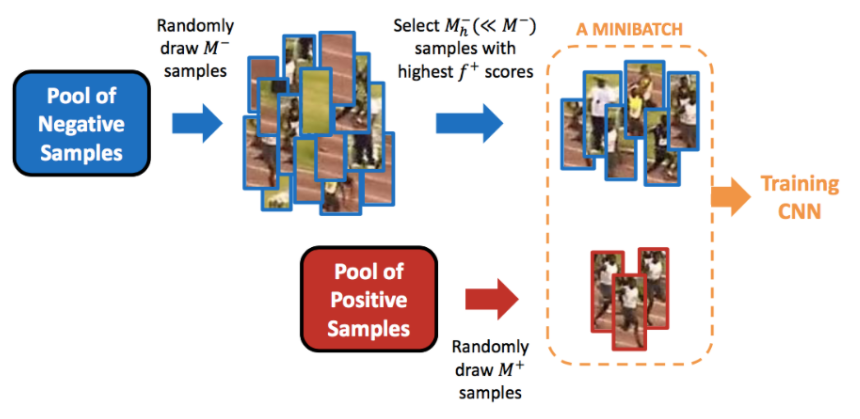 Fast R-CNN에서 mini-batch를 구성할 때, 두개의 이미지에서 각각 64개의 RoI를 positive, negative 1:3 비율로 샘플링하여 총 128개 RoI로 mini-batch를 구성합니다. OHEM은 loss가 높은 RoI를 선별하여 negative sample를 샘플링하는 알고리즘 입니다. loss가 높은 RoI로 구성된 128개의 mini-batch를 활용하여 Fast R-CNN의 성능을 향상시켰습니다.
