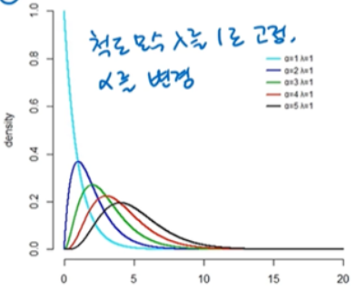 이 확률변수를 모두 다 더하면 감마분포가 됩니다.