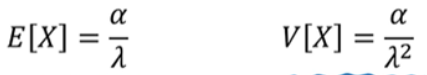기대값과 분산은 모수로 정의된 함수입니다. 감마분포의 기대값과 분산은 다음과 같습니다.