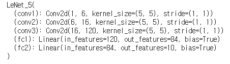 self.conv3 = nn.Conv2d(16, 120, kernel_size=5, stride=1)