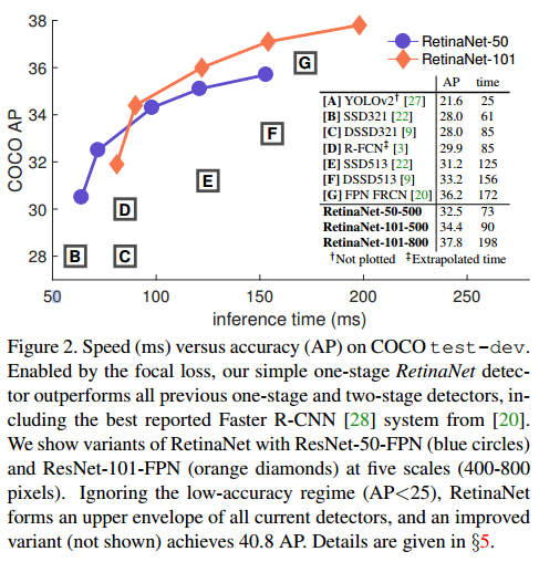 R-CNN과 같은 two-stage detector이 one-stage detector보다 높은 정확도를 나타내는 것은 일반적입니다. 하지만 one-stage detector(YOLO, SSD)는 속도가 빠르다는 장점이 있습니다. RetinaNet 저자는 one-stage detector의 낮은 정확도의 원인은 객체와 배경 클래스 불균형가 원인이라는 것을 발견합니다.