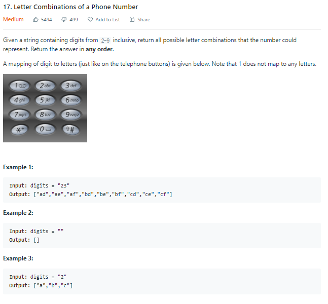 leetcode 17. Letter Combinations of a Phone Number 문제입니다.