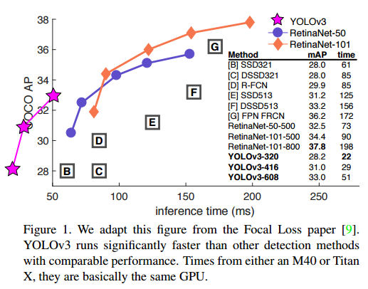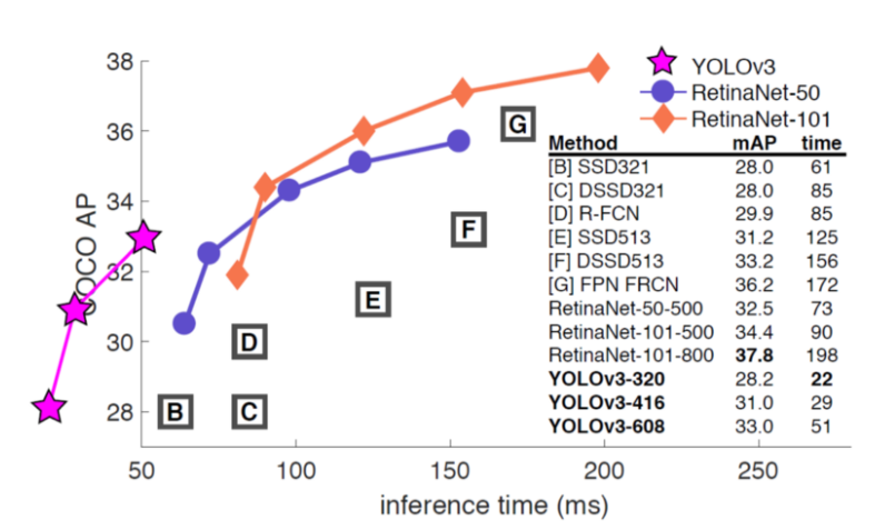 YOLOv3의 성능입니다.