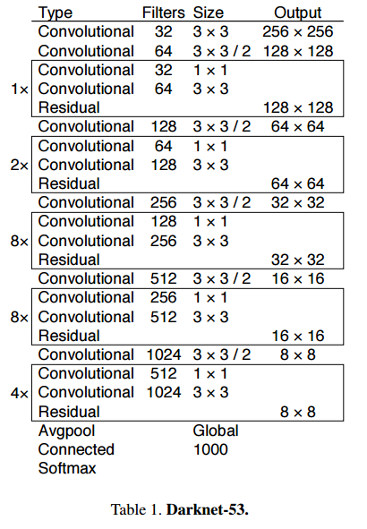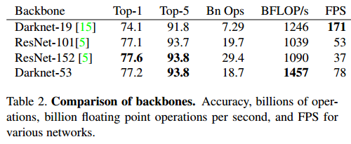 ImageNet dataset에서의 Darknet-53의 성능입니다.