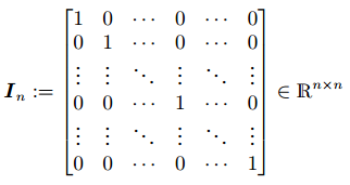항등 행렬은 대각 요소가 1이고 나머지 요소가 모두 0인 행렬인 정사각행렬입니다.