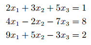 연립 방정식이 다음과 같이 주어졌을 때, 행렬 곱셈으로 표현할 수 있습니다.