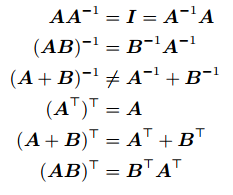 다음은 역행렬과 전치행렬의 중요한 성질입니다.