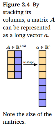 $R^{mxn}$ 공간에 있는 행렬의 열을 쌓으면 $R^{nm}$ 공간에 있는 긴 벡터로 표현할 수 있습니다.