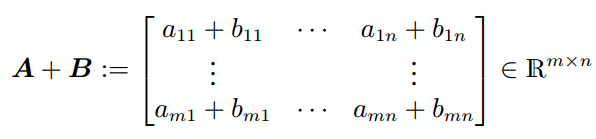 (mxn) 동일한 크기의 두 행렬 A, B의 덧셈은 element-wise sum으로 정의됩니다.